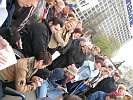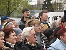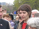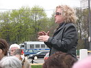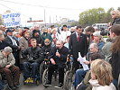 27.04.2007 Митинг против дискриминации инвалидов, прошедший сегодня около дома правительства. Мы ездили на акцию вместе с Хлоркой и Мариной. На протяжении всего мероприятия и менты, и протестующиеся интересовались, почему мы пришли. Особенно удивлялись глухонемые, когда выкупали, что мы - не понимаем их. Да, вы угадали, НЕинвалидов среди 230 человек-участников акции почти не было. Лишь матери детей, больных муковисцидозом, родные колясочников и несколько переводчиков. Два телеканала - НТВ и 3, менее 10 пишущих журналистов. Всё. Вся реакция, на которую способна Москва. Но это еще что, прошлый митинг, на который мы не успели, вообще не освещался в СМИ. Много ли инвалидов? Более чем 10% людей - инвалиды. В газете "Русский инвалид", которую раздавали вместо листовок, написано, что в столице 1 млн. 200 тыс. инвалидов. Что было предложено этим измученным людям сегодня? Были металлоискатели - вдруг какой-нибудь неколясочный инвалид принесёт бомбу. Было два десятка ментов - а ну как костылями пойдут Белый дом крушить. Было ограждение - чтобы инвалидам было удобнее тесниться на выделенном для акции пространстве. Было звукоусиление. Пресс-служба ГУВД - чтобы запомнить всех инвалидов, посмевших заявить о своих проблемах (порекомендовавшая нам с нею не ссориться). Клуб "Кинолюбитель". Депутат. И еще был народ, кричавший: "Каждому чиновнику - пенсию инвалида!" "Грабителей бедных и слабых - под суд!" "Нельзя издеваться над инвалидами!" "Михаил, уходи!" "Зурабова в отставку!" "Зурабова - к ответу!" "Не отнимайте у нас лекарства!" "Образование для всех!" "Пенсии - 40% средней зарплаты!" "Зурабов! Верни лекарства детям и старикам!" "Долой Зурабство!" Все эти лозунги были предварительно просмотрены пропускающими в металлоискатель, одобрены и переписаны специально предназначенным для этого ментовским человеком, получающим гораздо больше, чем каждый из протестующих и, видимо, считающимся (таким странным и смешным способом) приносящим пользу обществу - в отличии от людей, которых всем и всегда попрекают только за то, что они больны. Которые не могут передвигаться по городу - потому что городу неинтересны их проблемы. Которым не позволяют учиться в обычных школах - потому что не хотят тратить средств на оборудование школ. Которых не берут на работу. Которых лишили лекарств и дотаций. Для которых в России нет ни одного специального санатория. Для которых даже получение планового протеза - унизительная пытка. Для которых в городе не предусмотрено ни то, что пандусов и подъемников в общественном транспорте, но даже туалетов. Вы знаете, у меня есть ребенок. Ему год и пять месяцев. У нас нет съездов для колясок в доме. Кто-то сделал деревянный - но это пытка. Пытка даже для молодых женщин с детьми. Когда мы прижали ответственную по подъезду и спросили, почему нам не построят пандус, женщина ответила: "Нам пандус не нужен. У нас в подъезде инвалидов не проживает". Пожилая, в общем, уже женщина. После этого ответа я неделю не могла прийти в себя. Вот так. Не проживает у нас инвалидов. Нет нам дела до колясочников. Чего им в нашем доме делать? В "Русском инвалиде" написано: "Есть вопросы, которые может решить только сам народ". Народ - это давно не мэр, не министр, не президент. У меня есть даже некоторое убеждение, что никогда и нигде эти люди гарантами прав не являлись и никого, кроме себя - словно мы, пауки - н