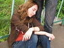 29.07.2007 По грибы. Поход №3 (Подмосковье) Фоторассказ Ангелины Киян По грибы обожаю ходить еще с детства, и окрестности любимого города, в котором родилась, были на предмет тихой охоты исхожены в своре время вдоль и поперек. Потом были горные кавказские походы. А потом переехала жить в столицу. Природных окрестностей тут пока не знаю, но грибную любовь ведь за пазуху не заткнешь. У кого не спрашиваю, куда ехать за грибами, никто ничего не говорит. Тайна, однако. А тут недавно Любава подсказала мне одно милое сообщество грибников , я на днях зарегистрировалась там и отписалась в личку Тикану, от коего и получила время и место встречи. Как раз перед этим воскресеньем шли нехилые дожди, и ближайшие дни обещались быть грибными. Только немного засомневалась, а не будем ли мы по дождю и холоду искать эти самые грибы. Но ранним воскресным утром все мои сомнения рассеялись под чистым столичным небом. Приключения начались уже в метро, где мы договорились встретиться с ребятами. Мы с Ванькой были на месте почти за полчаса до назначенного времени, но никого похожих на грибников в округе не наблюдалась, и пока я ждала, он побежал за батарейками для цифрового фотика, которым меня накануне снабдил Нуар, за что ему отдельный респект. Позже я оценила все прелести цифровой съемки. Только Ванька отошел, появились Тикан и Белка с большой корзинкой. Узнались мы сразу, хоть и не разу не виделись. Грибник грибника всегда найдет. Потом нарисовался Иван с батарейками, и мы пошли на вокзал. Нас оказалось в итоге четверо, хотя первоначально предполагалось быть около семи человек, но они все отказались в последний момент по самым разным причинам, поэтому пусть теперь пеняют на себя и завидуют нам. По дороге в толпе истошно мяукнуло что-то кошачье, и я мельком увидела, как какая-то женщина торопливо засовывала в большую черную спортивную сумку упирающегося серого котенка. Мы спешили не опоздать на электричку и бежали вперед, как вдруг Белка отстала и затерялась в толпе, а потом вернулась, неся на руках коричневую пятнистую почти взрослую кошечку. Та очень заметно нервничала в людском шуме подземелья и настороженно оглядывалась по сторонам. - Ничего, потерпи, сейчас мы тебя на улицу выпустим, - успокаивала ее девушка, почесывая худую спинку. И кошка терпела, вцепившись когтями Белке в плечо. Пока ребята выясняли расписание на большом стенде, я увидела еще одного серого котенка невдалеке. Котенок был пойман и, уже рассмотрев обоих кошачьих вблизи, мы сравнили и увидели их похожесть – они были из одного помета. А Ванька над нами все подтрунивал: - Ну, и что вы с ними делать будете? В лес на шашлыки? - Ага. Взяв билеты, пошли садиться в вагон. Электричка отправлялась через несколько минут. Кошки вели себя почти тихо. А я все терялась в догадках, зачем они были нужны той женщине, и куда она их несла – совершенно не ясно – может отдавать у метро, а может и правда на шашлык. Поначалу котята тревожились, а потом, поняв, что им ничего не угрожает, расслабились. При этом коричневая девочка уснула на сиденье, а серый кот, которого подобрала я, отправился смело бродить по вагону, но был быстро водворен назад на колени и запушистен по самые уши. Я брала с собой большой рисовальный блокнот с намерением закончить начатое, тем более что ехать до «41 километра» было почти час. Но эти кошки… Неугомо