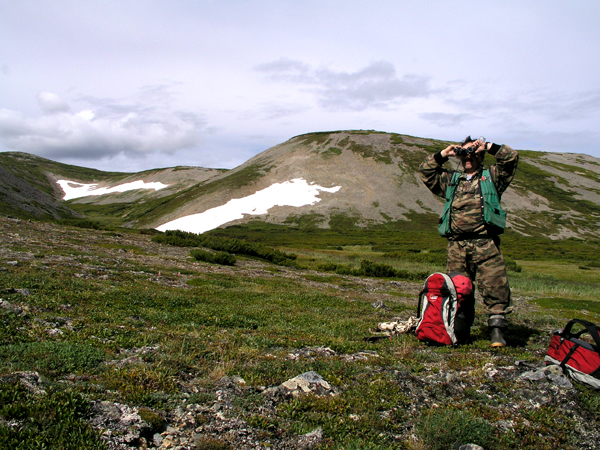 По прилету на участок (особенно, если на участке туман и мелкий дождь) голову посещают одновременно две мысли: «куды прилетели?» и «зачем прилетели?». Тем более, что никого двуногого в радиусе минимум 200 км не наблюдалось и до нас на этом участке была лишь одна экспедиция, да и та 40 лет назад (подозреваю, что после нас там еще столько же никого не будет).